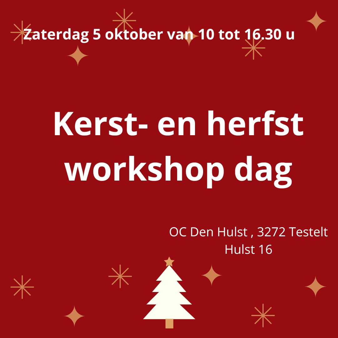 Kerst- en herfstworkshop : zaterdag 5 oktober van 10 tot 16.30 uur !